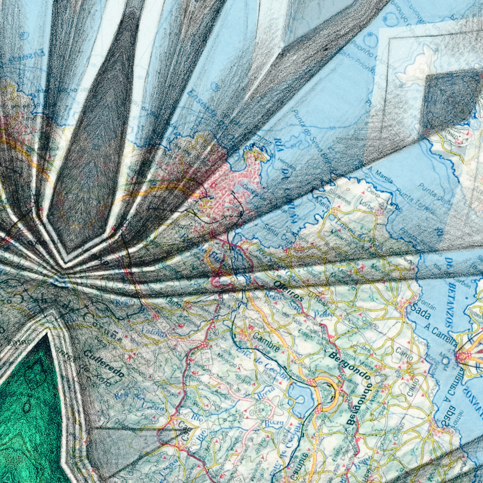1 Kaleidoscopia Golfo Ártabro. Infografía a partir de litografía sobre mapa. Impresión digital sobre Dibond. D 140 cm